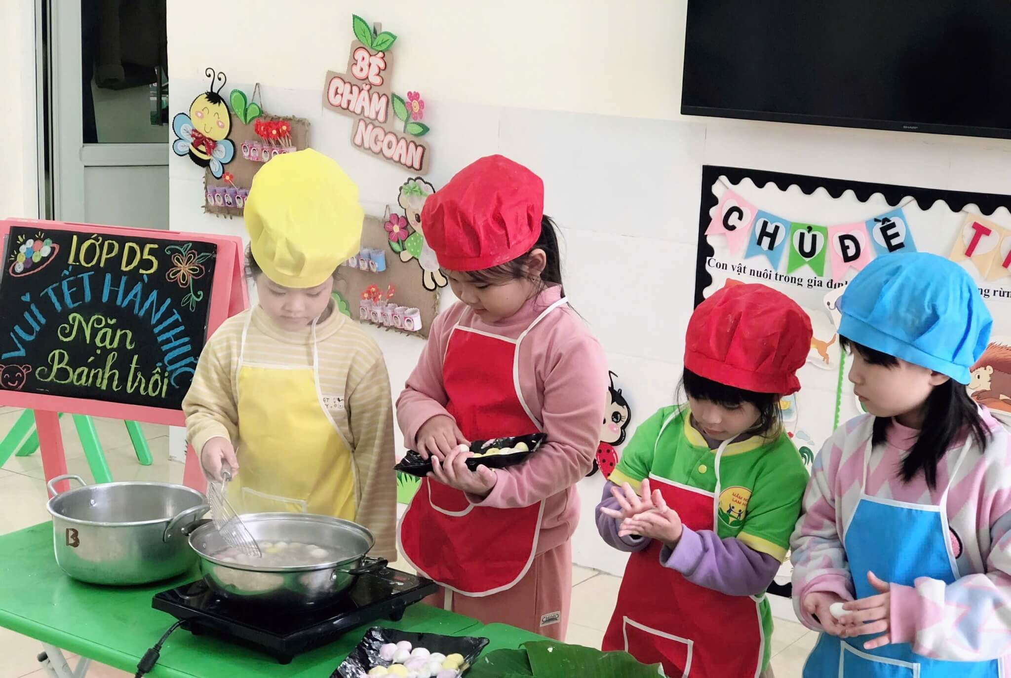 Nhân dịp Tết Hàn Thực (3/3 Âm lịch), Trường Mầm non Lam Hạ đã tổ chức cho các bé tham gia hoạt động trải nghiệm làm bánh trôi – một nét văn hóa truyền thống đặc sắc của dân tộc. Dưới sự hướng dẫn tận tình của các cô giáo, các bé được tự tay vo viên, nặn bánh, và quan sát quá trình luộc bánh. Hoạt động không chỉ giúp các con rèn luyện sự khéo léo, mà còn góp phần giáo dục trẻ về phong tục, tập quán cổ truyền của dân tộc Việt Nam một cách gần gũi, sinh động và vui tươi.