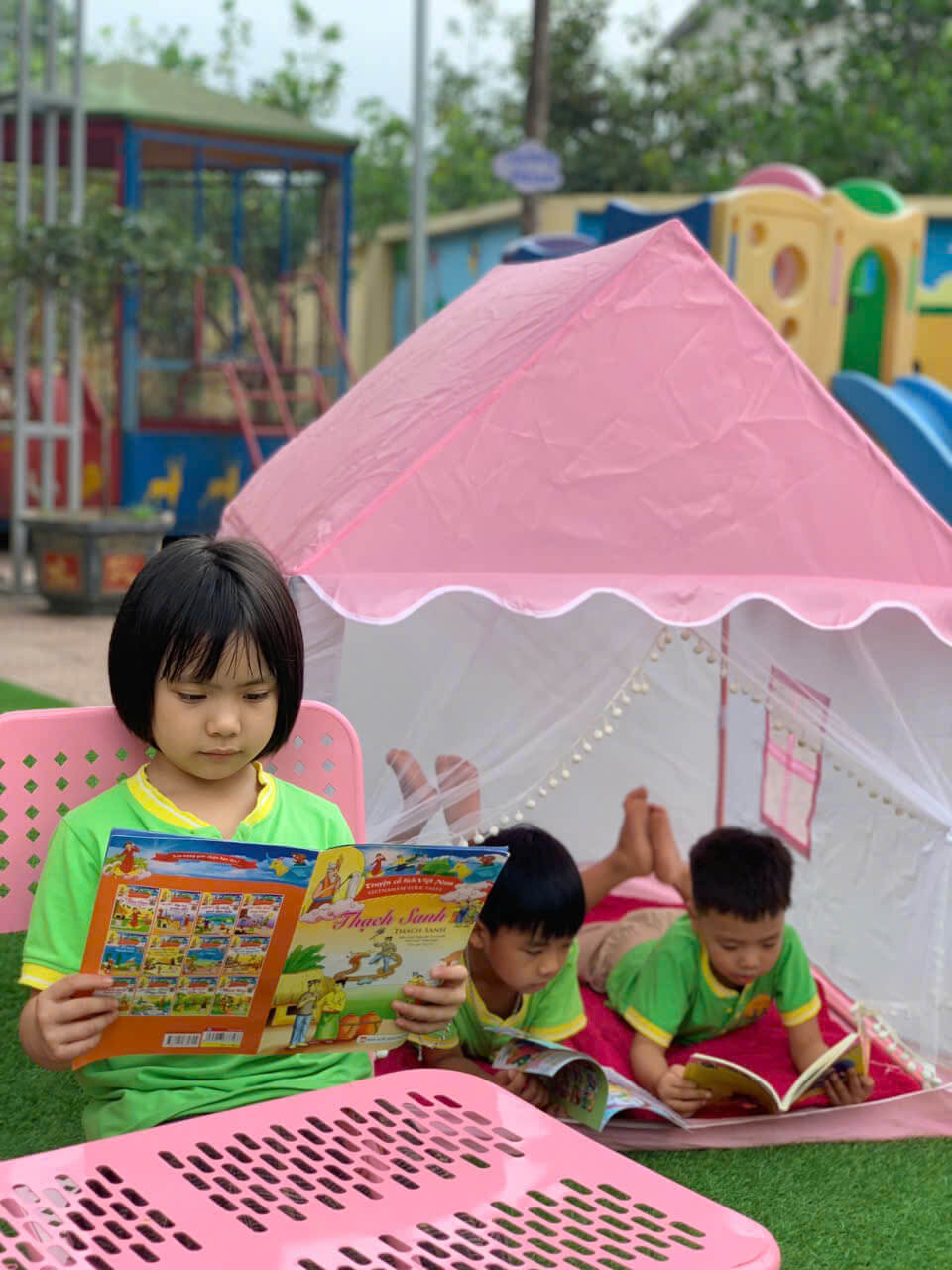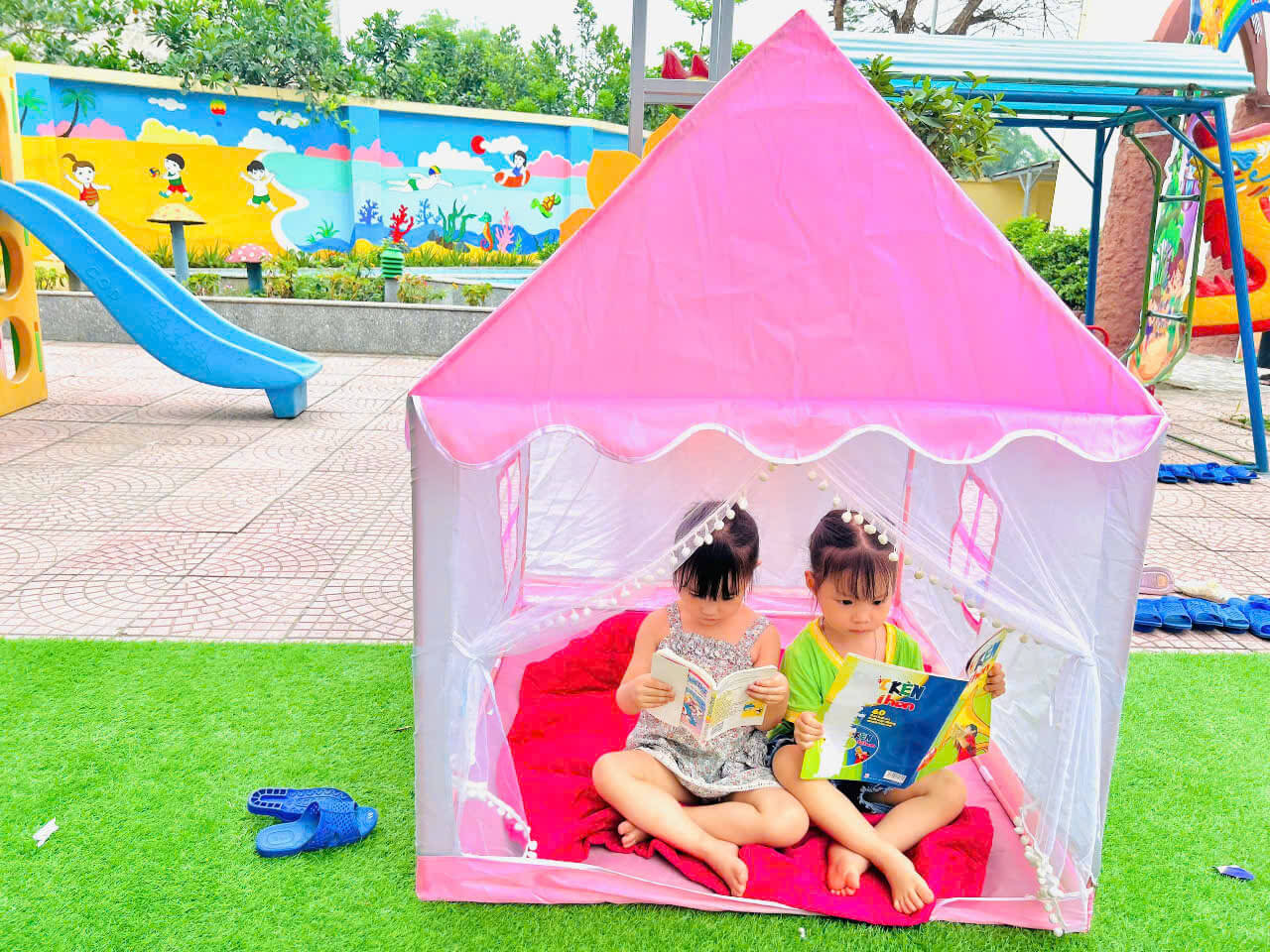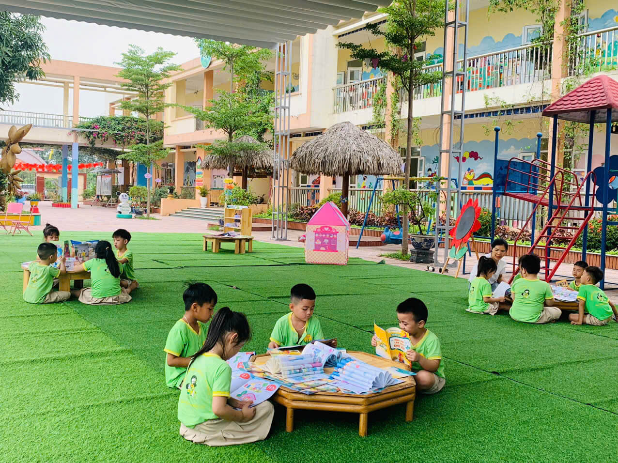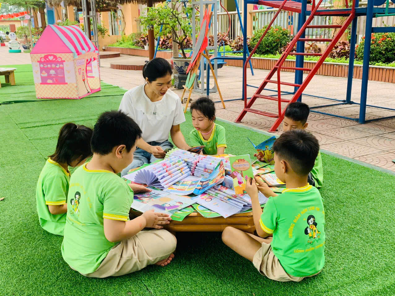 Ngày hội sách được tổ chức nhằm khơi dậy niềm yêu thích đọc sách ở trẻ ngay từ lứa tuổi mầm non, giúp các bé hình thành thói quen đọc sách và khám phá tri thức. Thông qua các hoạt động như kể chuyện theo tranh, xem sách cùng cô giáo, vẽ tranh theo nội dung truyện… các bé được tiếp cận với sách một cách gần gũi, sinh động và đầy hứng thú. Đây cũng là dịp để nhà trường, phụ huynh và các bé cùng chung tay xây dựng văn hóa đọc trong môi trường giáo dục thân thiện, tích cực.